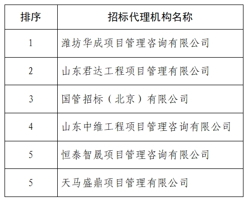 潍坊市大数据局遴选招标代理机构结果公告