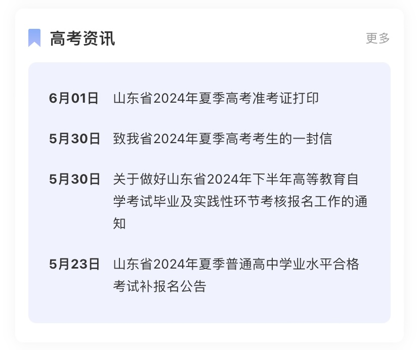 准考证打印时间、高考成绩查询时间、一分一段表公布、志愿填报平台信息、招生录取工作进程……这些由山东省教育招生考试院等官网发布的最新高考资讯,来“爱山东”高考专区就能一站速览。