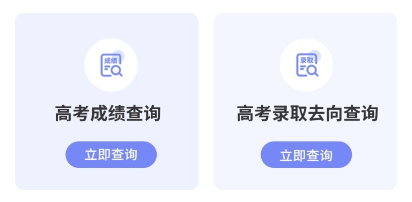 专区顶部为考生提供高考成绩查询、高考录取去向查询两大服务入口,只需点击进入相应服务,输入考生身份证号或准考证号等相关信息,即可快速查分数、查录取。