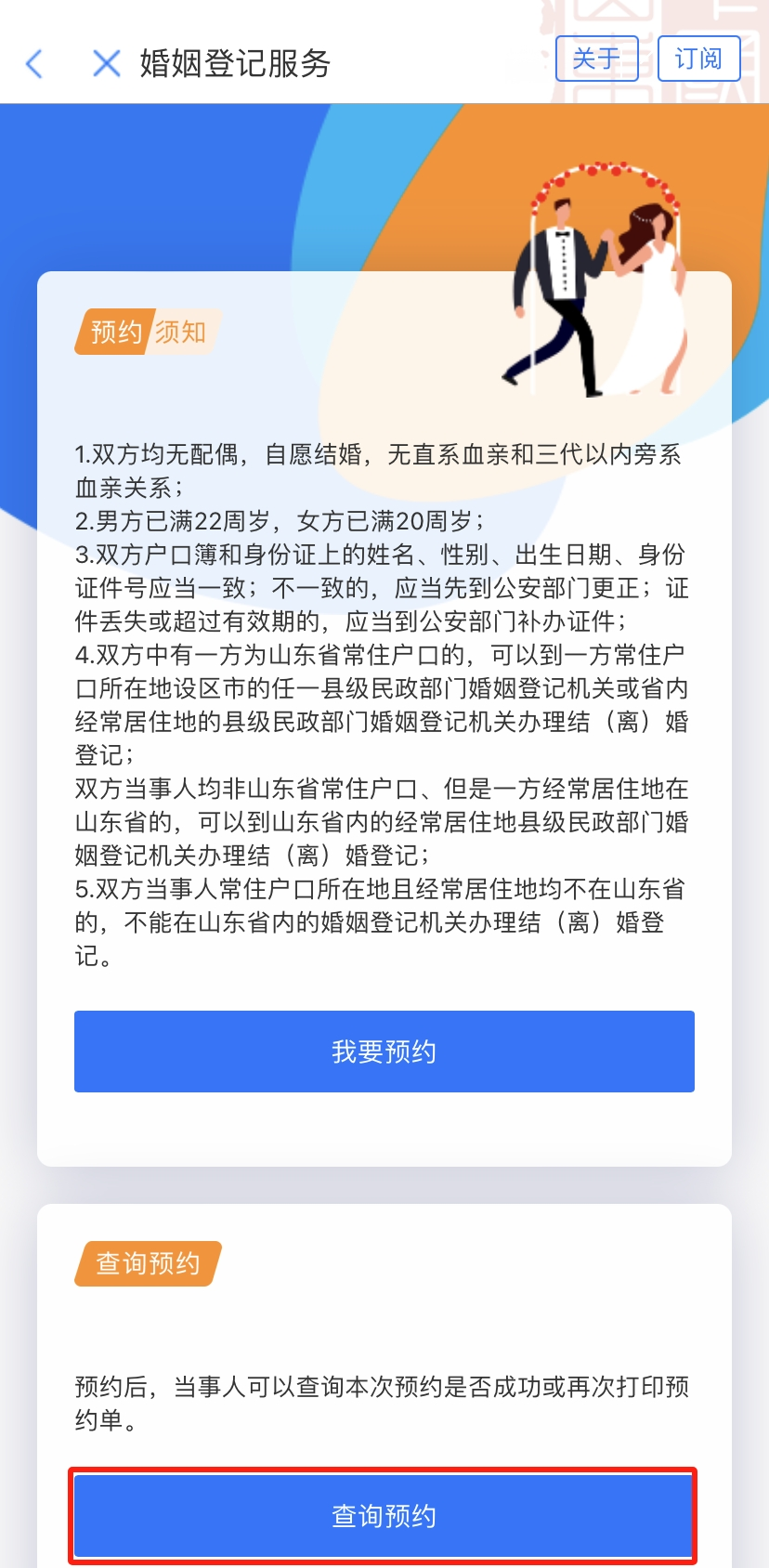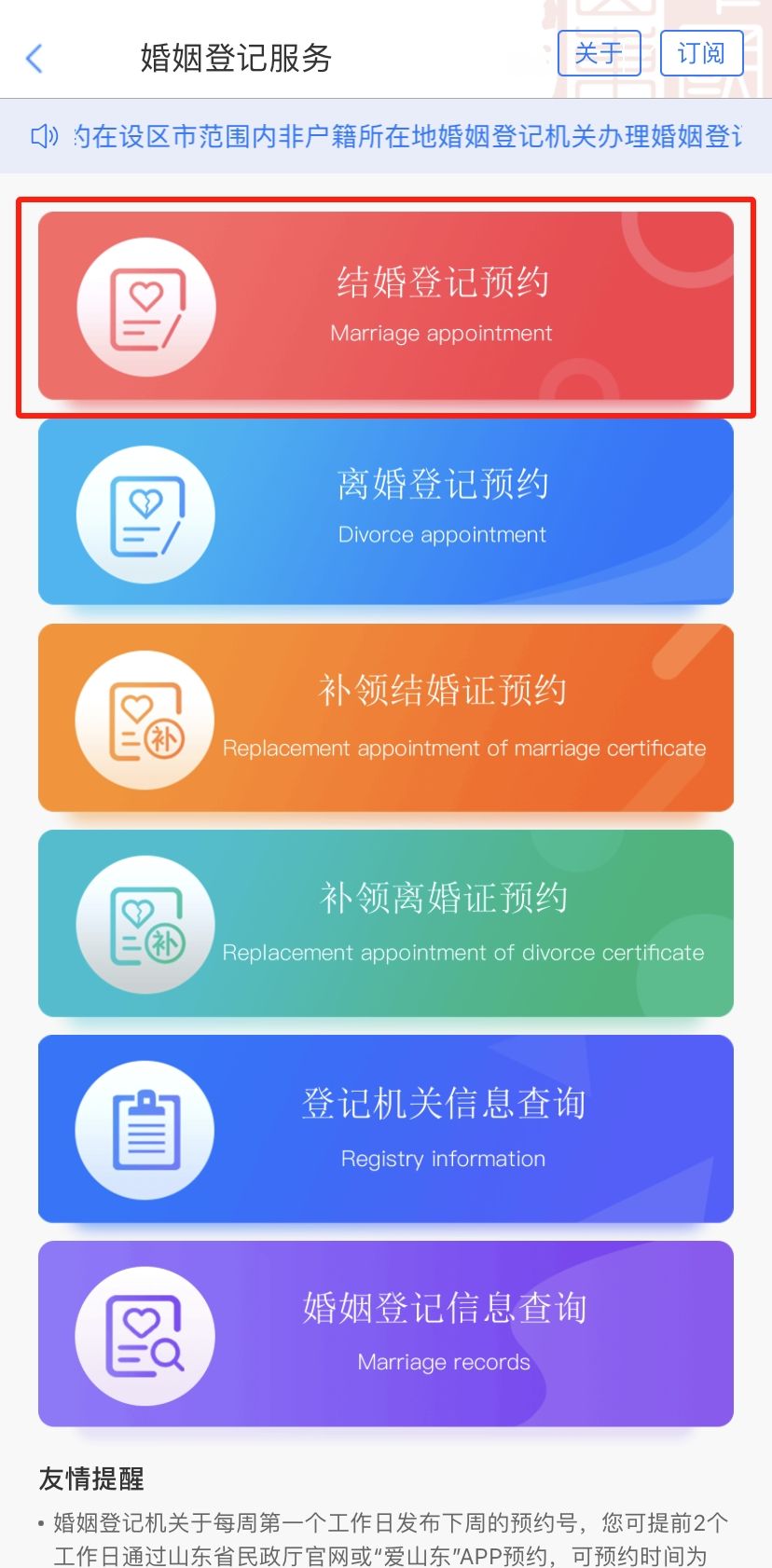 现在,就让我们一起来了解一下如何在“爱山东”上进行七夕结婚登记预约吧: