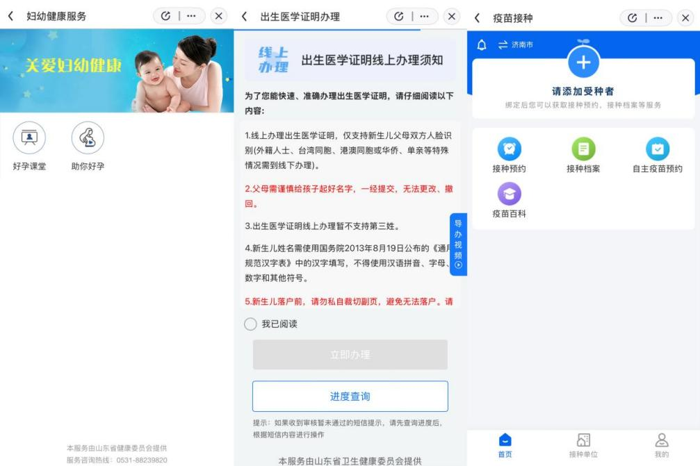随着二孩政策的全面实施,越来越多的家庭迎来了新的生命。“爱山东”深知妈妈们的多元化需求,推出了“妇幼健康服务”“出生医学证明办理”以及“疫苗接种”等一系列服务,陪伴您和家人走过每个重要时刻。
