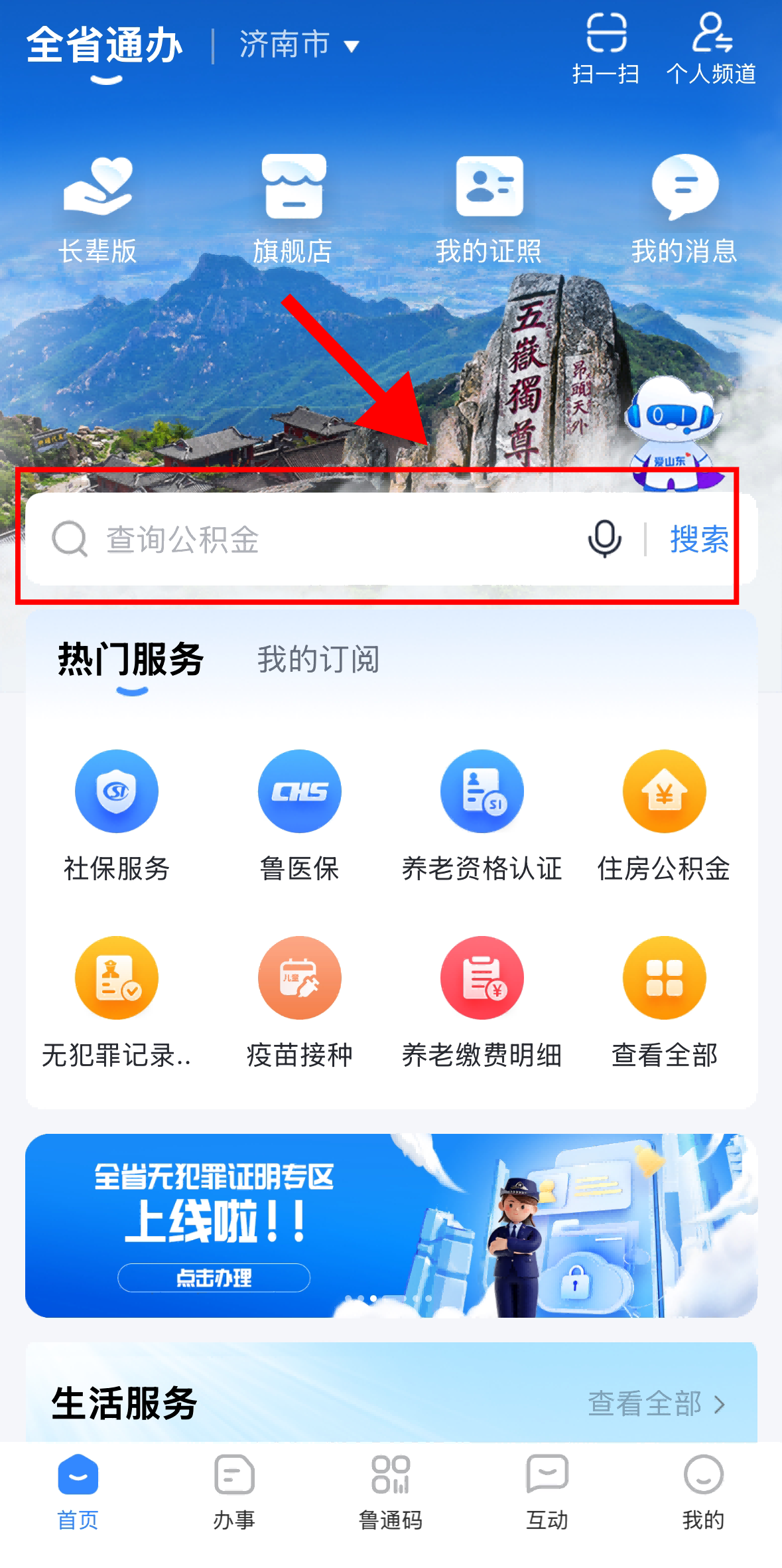 1、打开“爱山东”APP、微信或支付宝小程序,首页搜索“无犯罪记录证明专区”,点击进入;